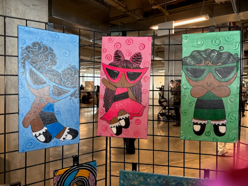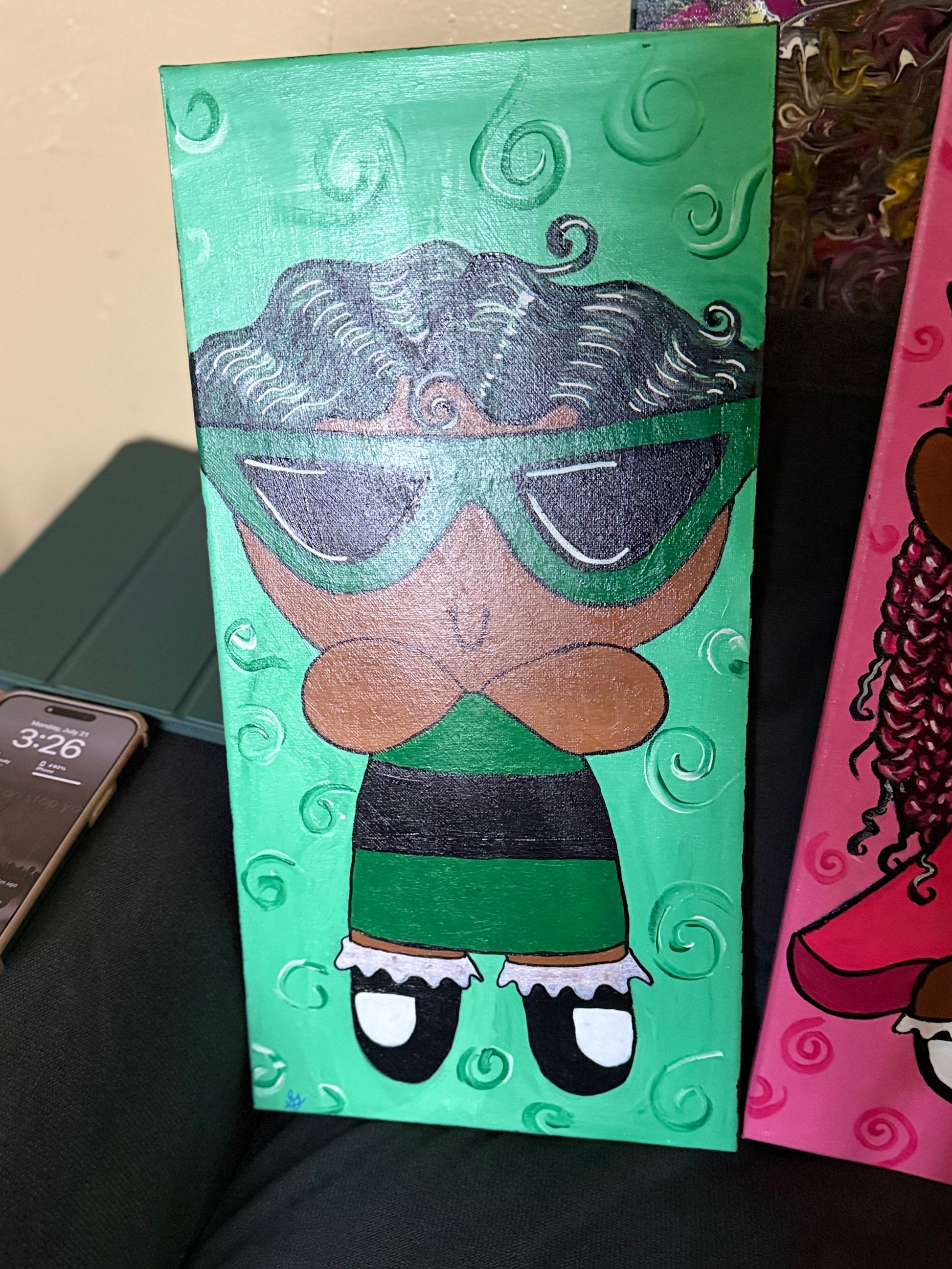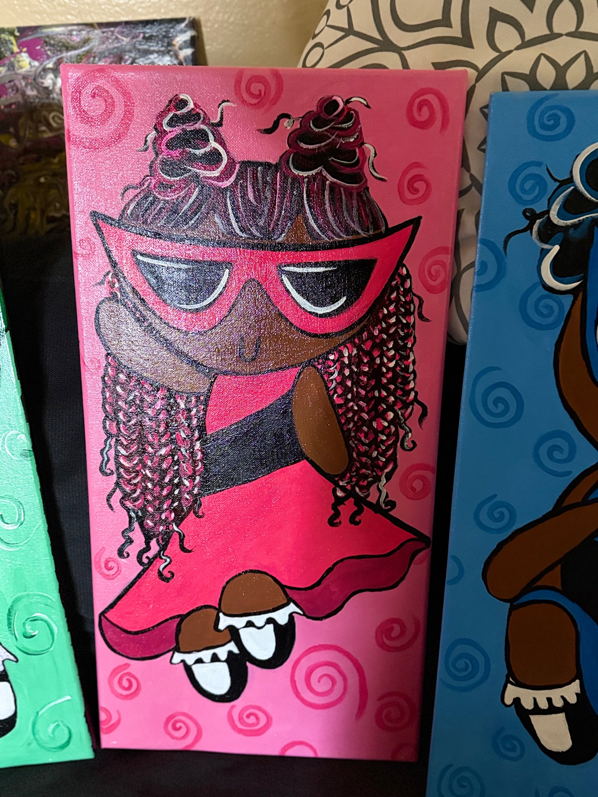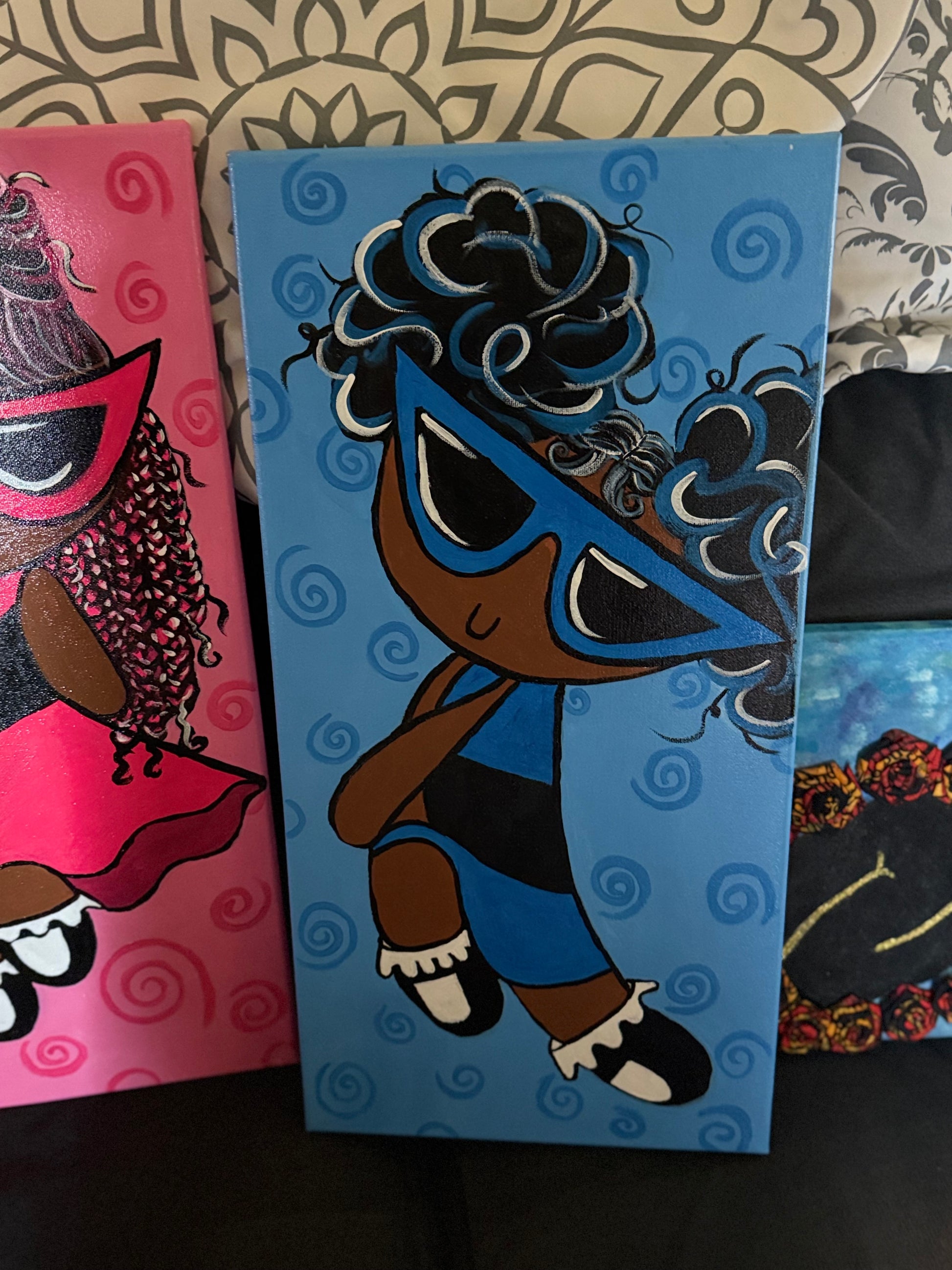 All acrylic paintings. Special feature glows in the dark with black or UV light.