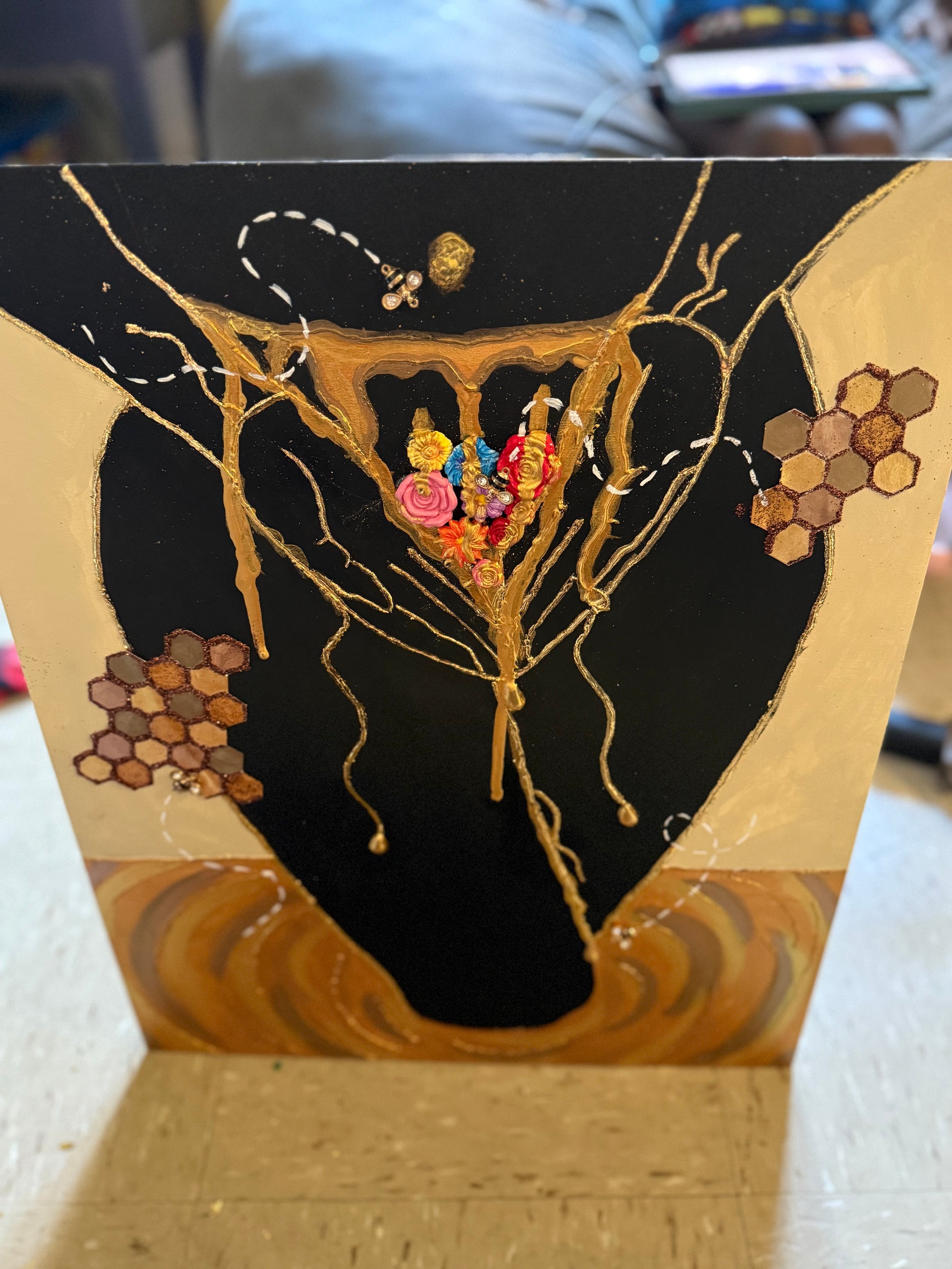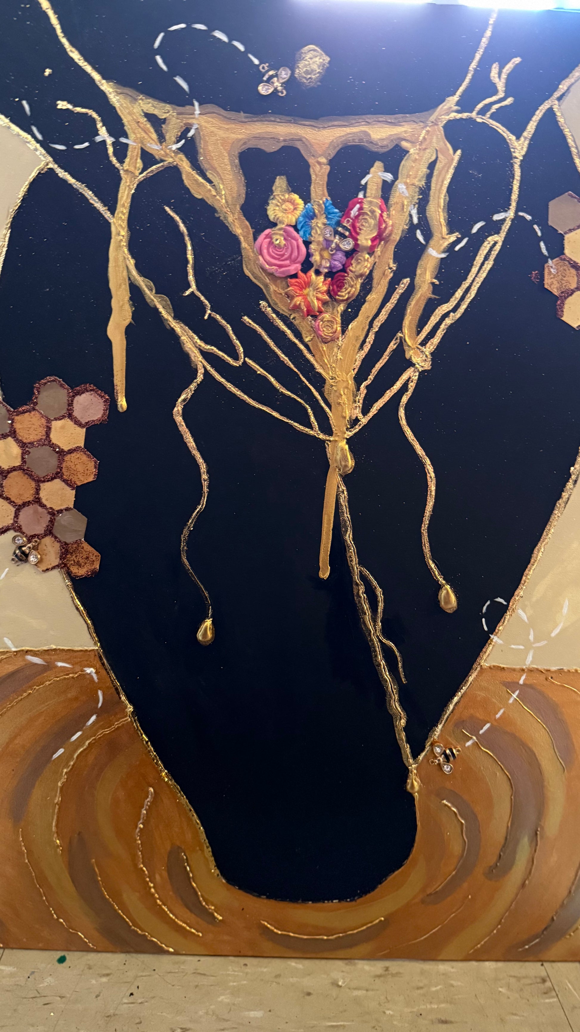 Acrylic painting with assorted metals for texture.