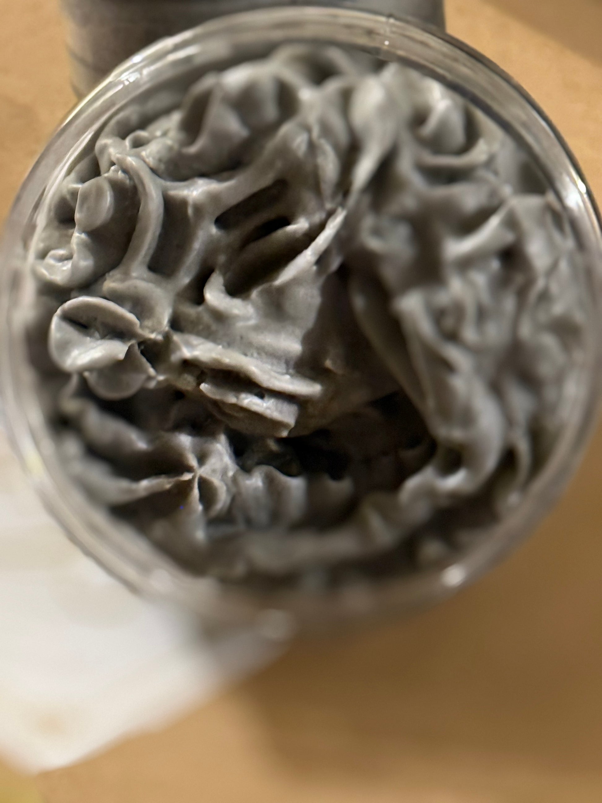Mango butter, Murumuru butter, Vanilla oil, Coconut oil, Vitamin E, Isopropyl myristate, Mica powder, Beeswax, fragrance oil
